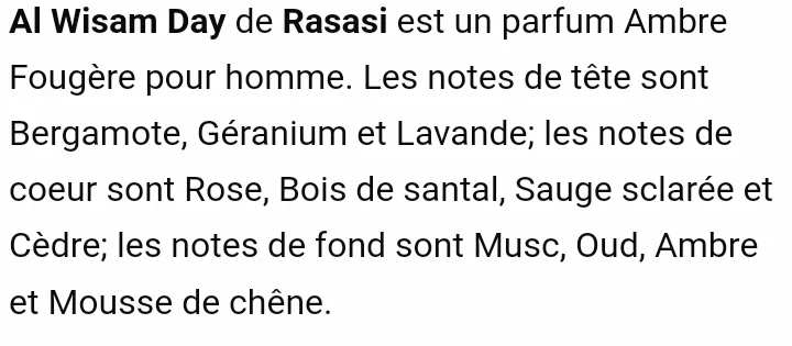 Al Wisam Day -الاصلية Parfum pour homme Rasasi