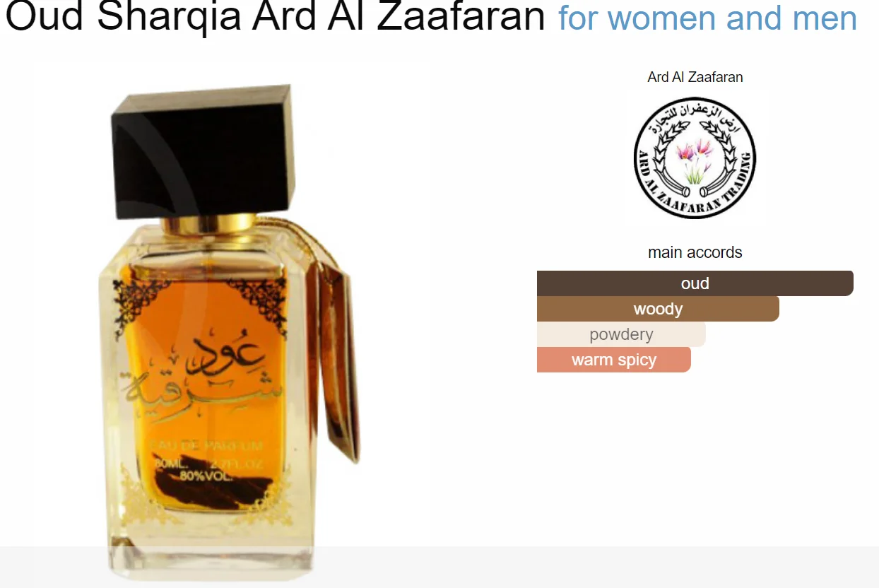 Oud Sharqia de Ard Al Zaafaran est un parfum Ambré Boisé pour homme et femme.