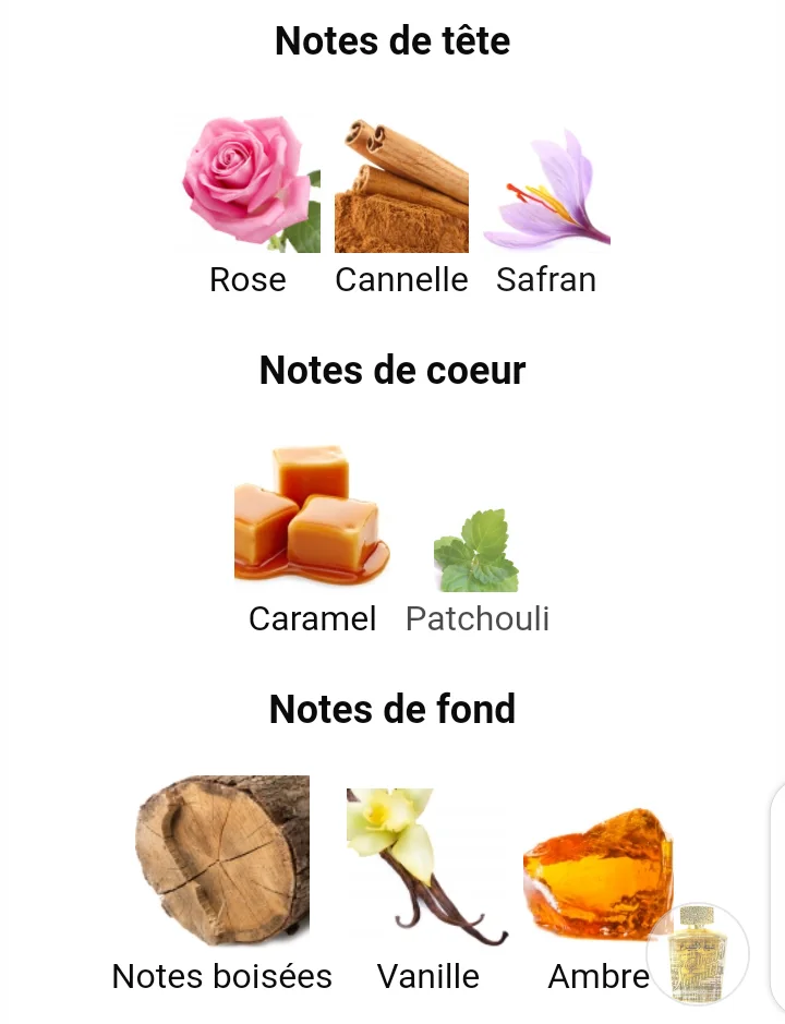 - Notes de fond : Notes boisées, Vanille, Ambre, Ambroxan.